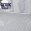 アーロンチェアの背と座に張られているファブリックは8zペリクルと言います。よくメッシュと呼ばれていますが、正式にはペリクルといい、テニスのラケットのように実際に編んで形作られています。ユーザーが着座した際の荷重を編まれたペリクルで耐圧分散をする設定となっております。場所によって異なるテンションを実現しているこの8zペリクルは、深く座る事で自然と柔らかいゾーンに荷重がかかり、姿勢がホールド。無意識下で長い時間仙骨のサポートを受けることができます。