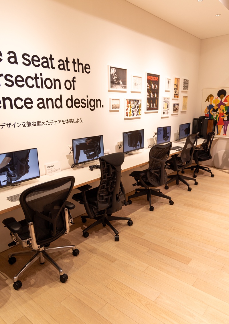 特に人気の高いHerman Millerのアーロンチェアを中心に、オフィス・ワークフロムホーム関連商品のエルゴノミクスソリューションの提案を行っております。